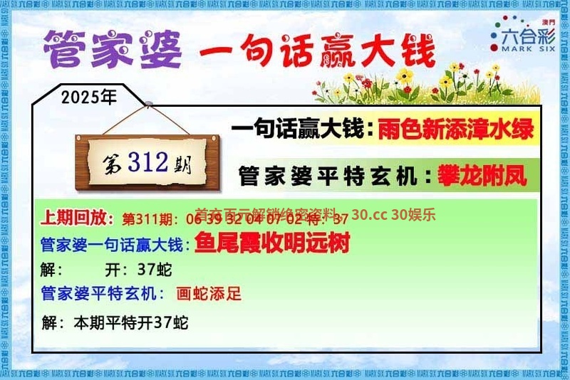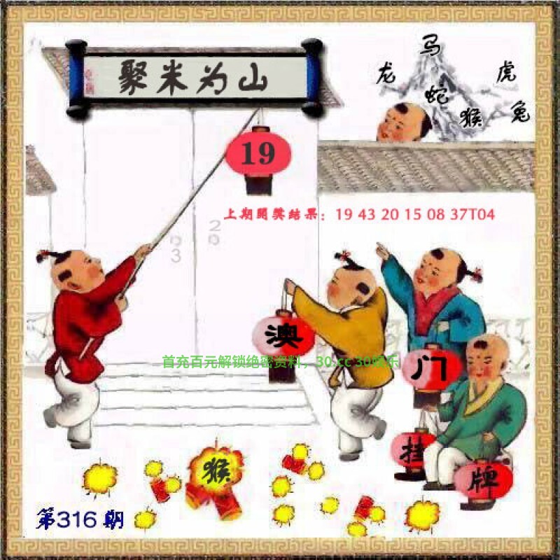 | 316期⑦码 | 30.06.19.21.15.24.46 | 马24中 |