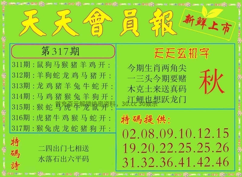 | 317期⑦码 | 21.33.43.08.30.10.27 | 發00中 |